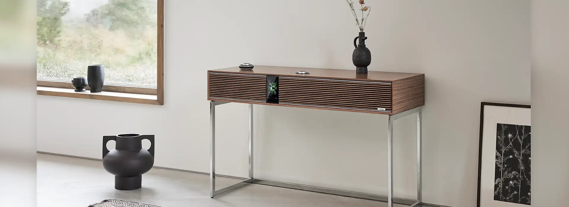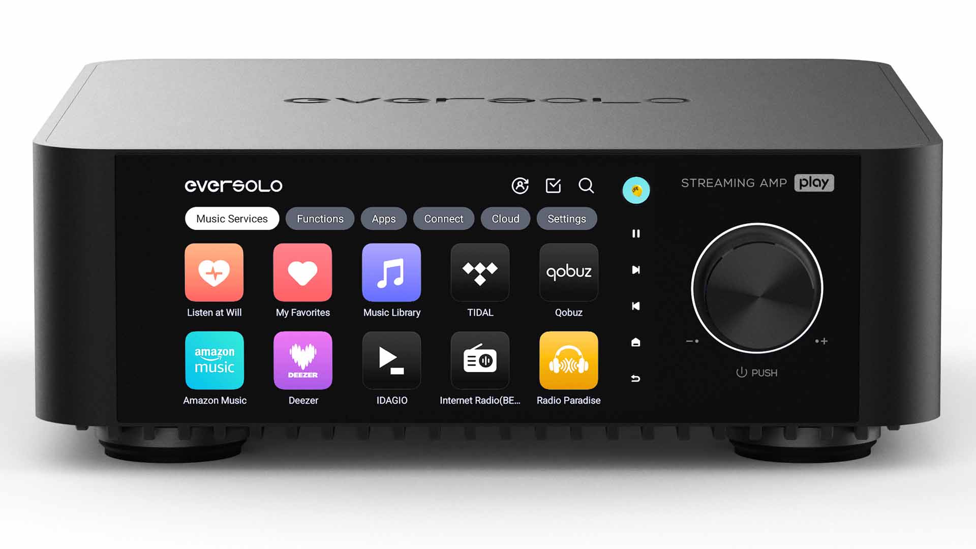 Die Steuerung erfolgt intuitiv über das große, elektromagnetisch abgeschirmte 8,8-Zoll-IPS-Touchdisplay auf der Vorderseite. Das Display bietet verschiedene Optionen für VU-Meter und Spektrumanzeigen. Zusätzlich kann das Gerät über einen Drehregler, die mitgelieferte Fernbedienung oder die Eversolo Control App (via Bluetooth) gesteuert werden.