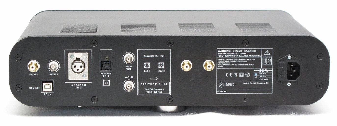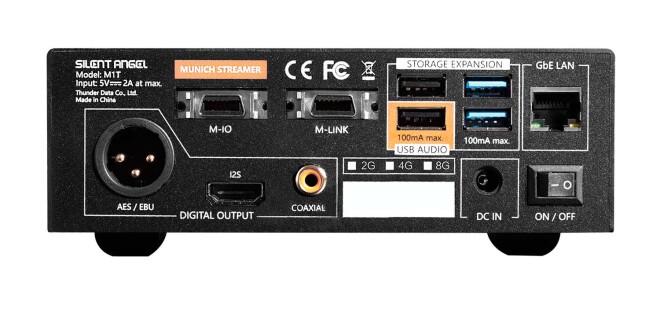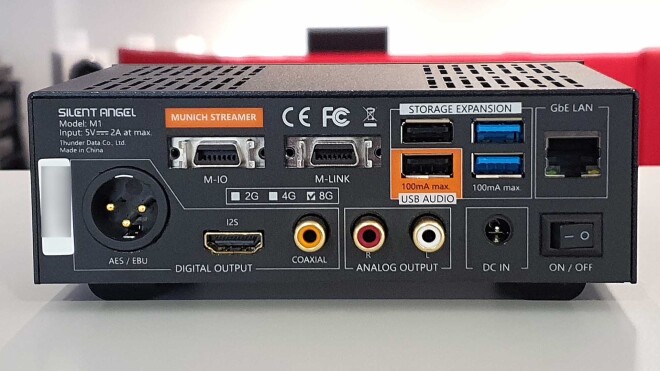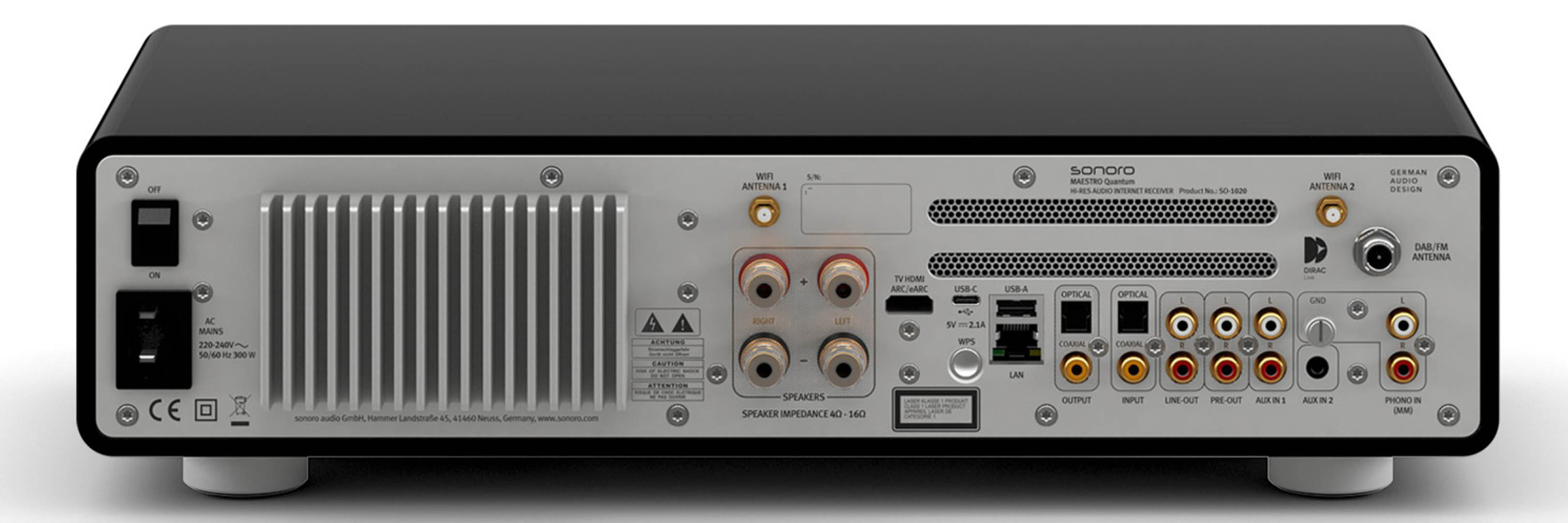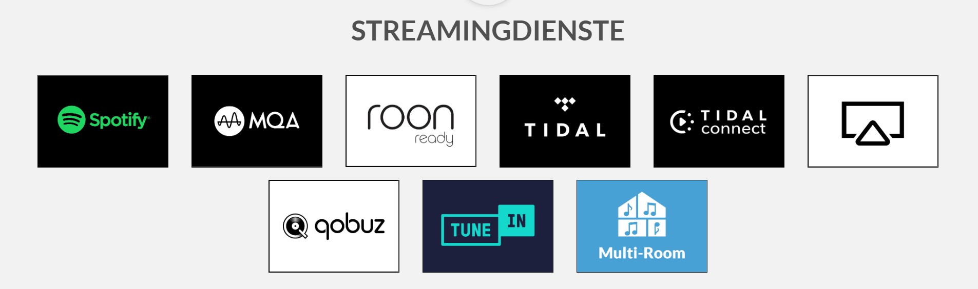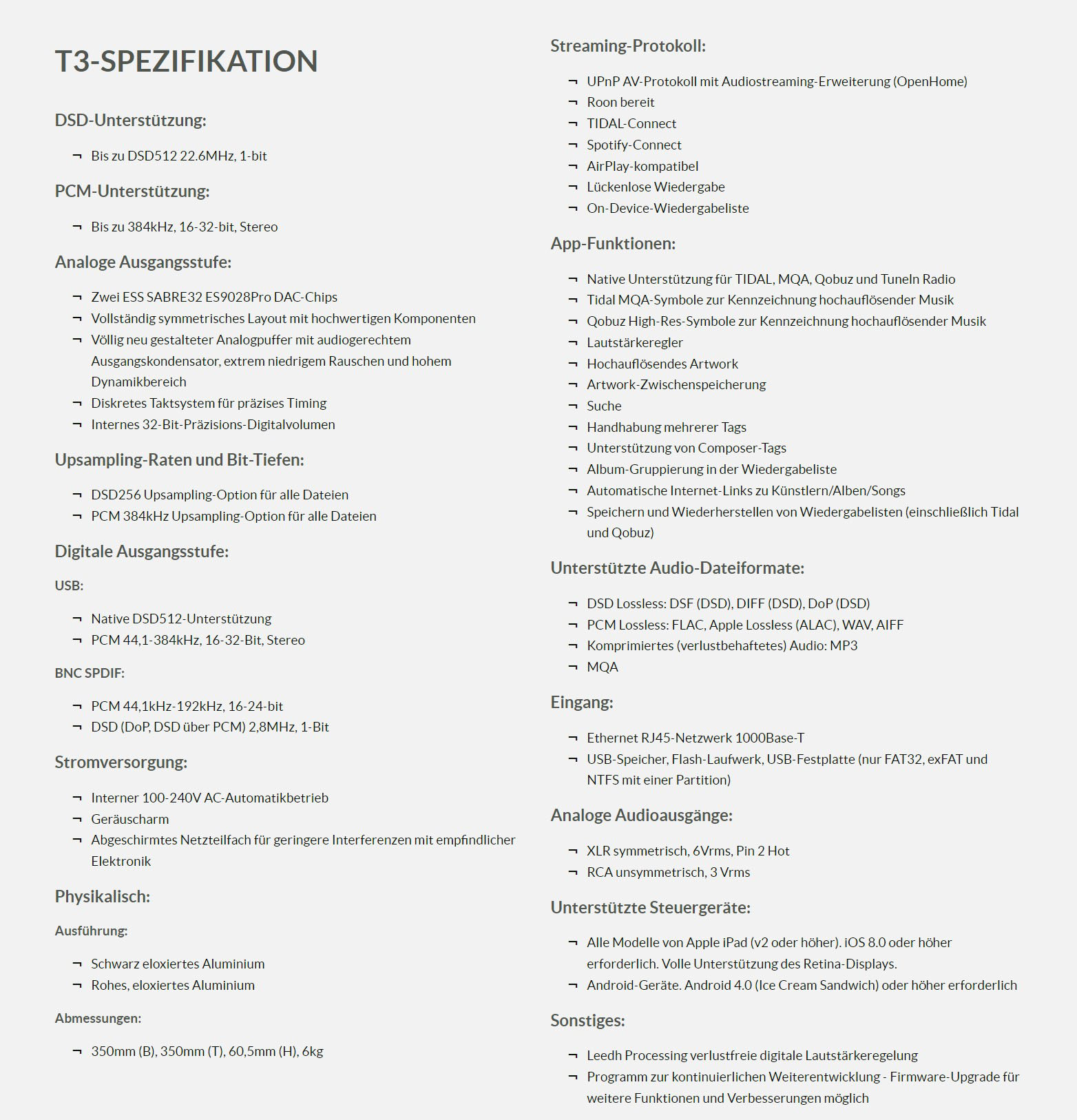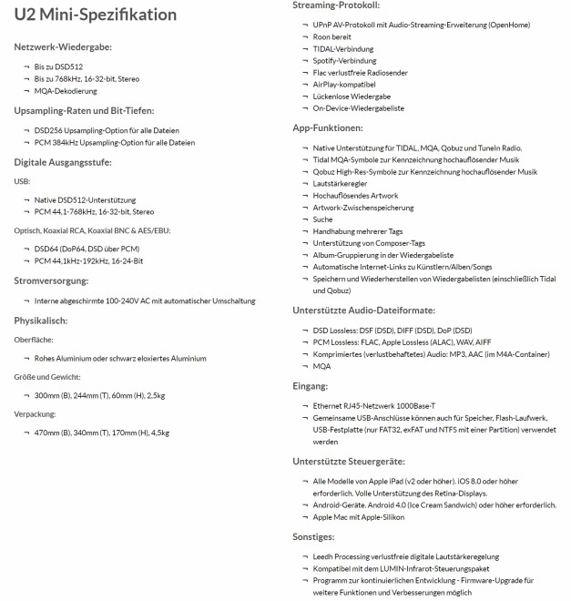 - Digitale Eingänge: USB-B Audio, IIS (8 Modi), 2x Optisch, 2x Koaxial, AES/EBU, ARC