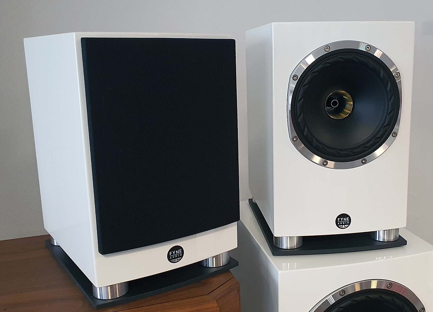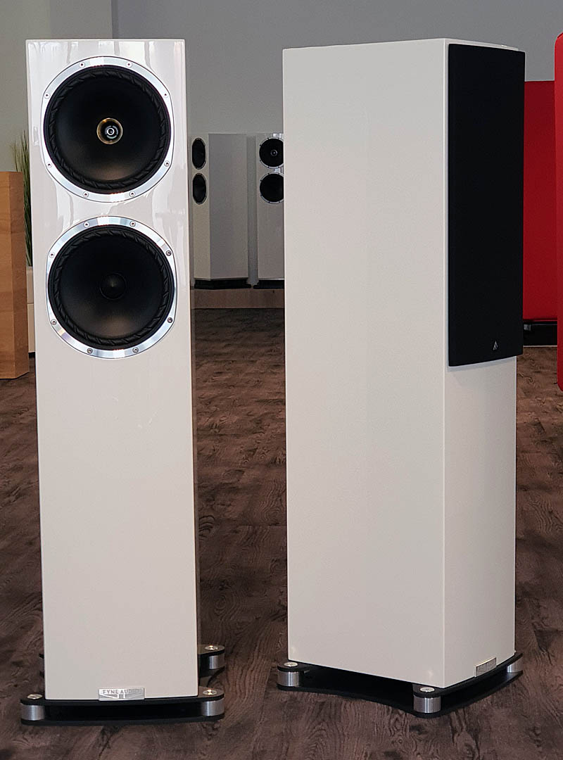 Fyne Audio F502 SP – ganz hinten im Hintergrund ist auch das “Standardmodell” F502 zu erkennen.