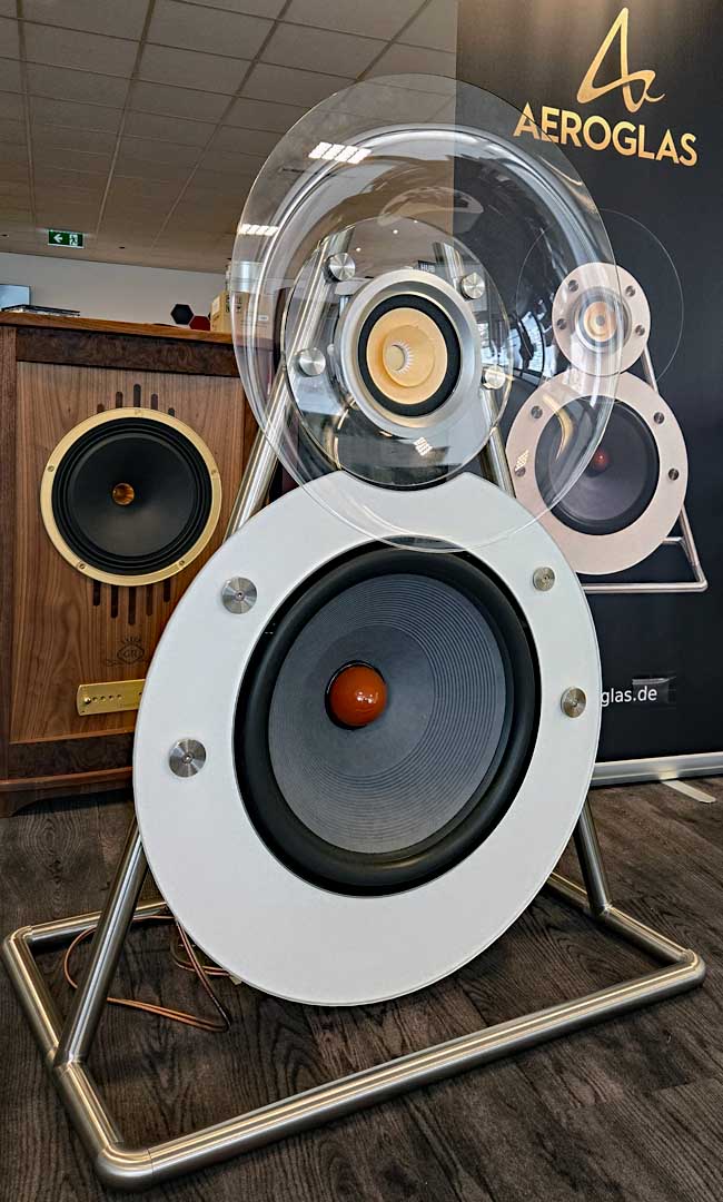 Von Aeroglas kommt ein Lautsprecher im Open-Baffle-Design. Der extrem hochwertig gearbeitete Breitbänder für die Hoch- und Mitteltonwiedergabe wird für die unteren Register von einem 21-Zoll-Woofer unterstützt. Das penibel berechnete Kugelwellenhorn aus Acrylglas sorgt gleichsam für gesteigerte Dynamik und unkritisches Abstrahlverhalten. Ein exorbitanter Lautsprecher, der leise und laut gut spielt und insgesamt äußerst viel Freude beim Musikhören bereitet. Wir vermitteln gerne einen Hörtermin in Ingolstadt. Mehr zu diesem Lautsprecher gibt es in Kürze auch auf der Website des Herstellers.