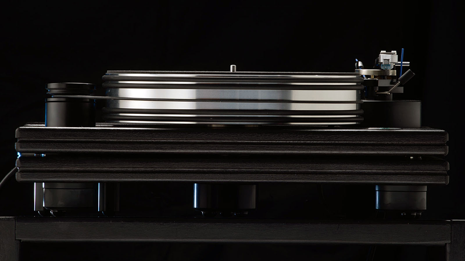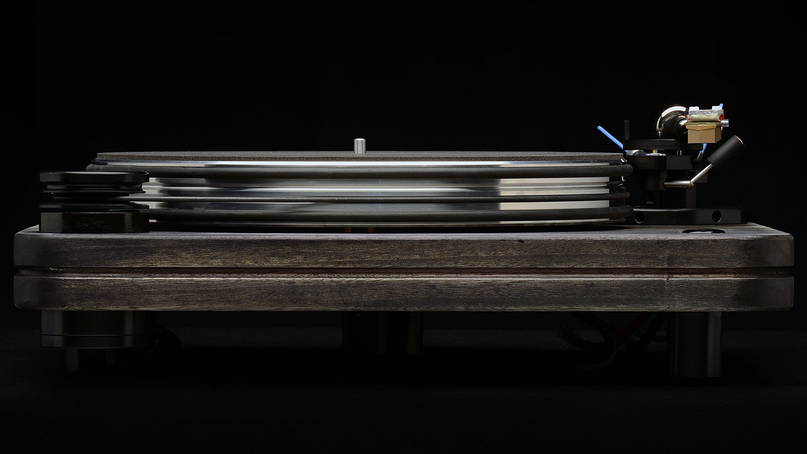 Motor mit sehr geringem Drehmoment zur Reduzierung von Antriebseinflüssen auf den Plattenteller. Spezieller Silikonriemen für extra ruhigen Lauf.