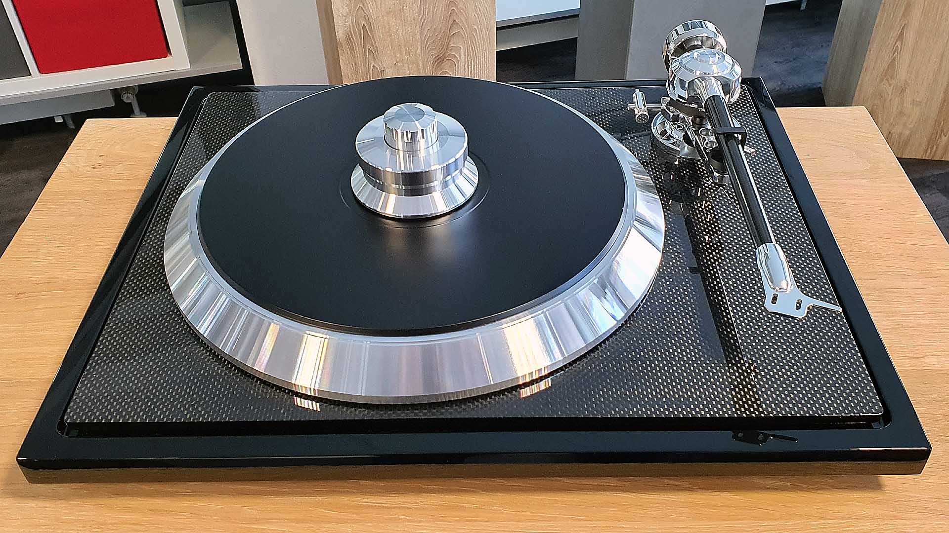 Bildschöner Plattenspieler im Carbon-Look