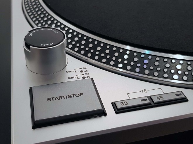 Die Wahl der Geschwindigkeit (33 oder 45 Umdrehungen pro Minute) erfolgt bequem per Wahlhebel, ebenso einfach gestaltet sich der Start und Stopp der Schallplattenwiedergabe (für 12-Zoll-Langspielplatten oder Maxis oder auch für 7-Zoll-Singles). Und natürlich wird der Tonarm am Ende der Wiedergabe auch von der Auslaufrille in die  Startposition zurückgeführt und das Gerät abgeschaltet. Wer alles lieber manuell machen möchte – bitteschön…