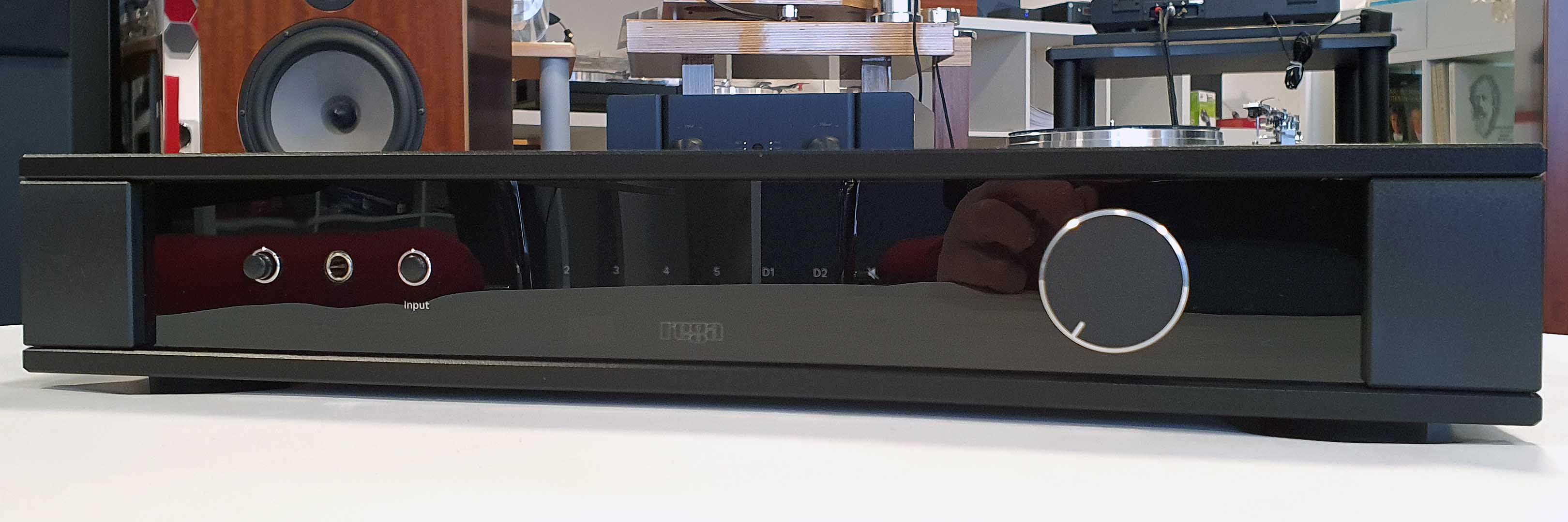 - “Nach guter alter Vollverstärkersitte sind zwei Lautsprecherpaare anschließbar sowie ein Kopfhörer, ein Phono- (MM/MC umschaltbar) wie ein symmetrischer Eingang nutzbar, darüber hinaus gibt es -abschaltbare- Klangregler, eine Art Loudnessfunktion namens “contour“, sowie einen Vorverstärkereingang.”