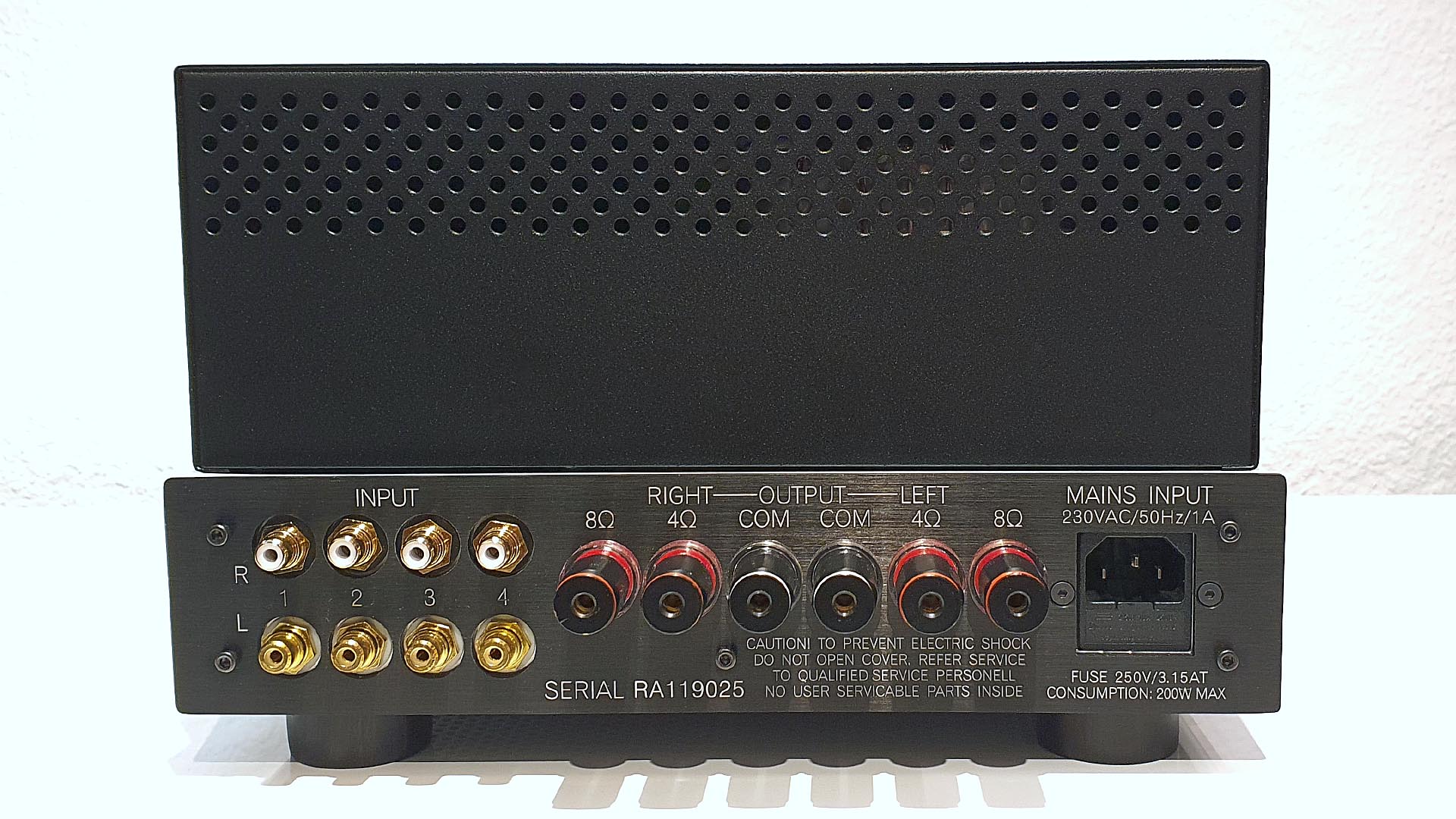- Intermodulationsverzerrung (CCIF IMD): <0,0015% (19 + 20 kHz, 10 W).