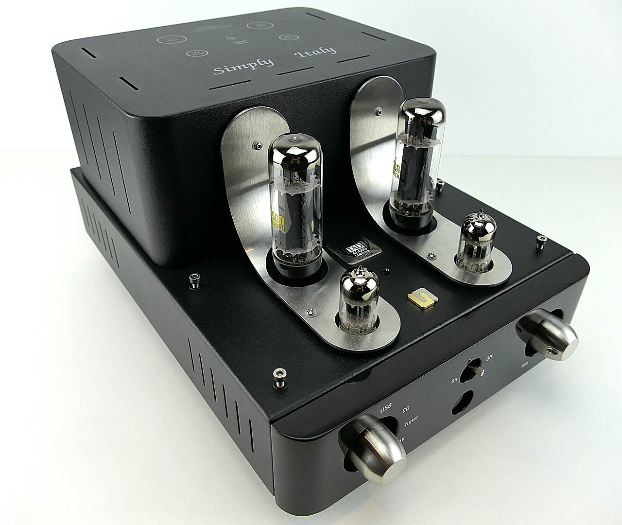 - Kanaltrennung (Class AB, 1 kHz, 10 W, AUX1, AUX2, TUNER, CD, STREAMER Eingänge): 100 dB.