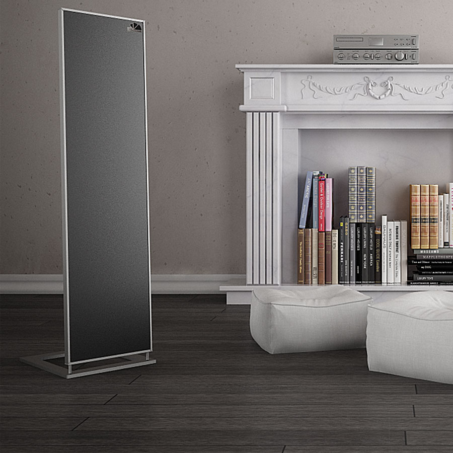• Gehäuseausführung: Das Gehäuse ist in den Oberflächen Eiche schwarz Dekor oder Eiche hell Dekor erhältlich, wobei die Front stets mattschwarz ausgeführt ist. Der Lautsprecher steht auf vier gummigedämpften Füßen zur mechanischen Entkopplung vom Boden.