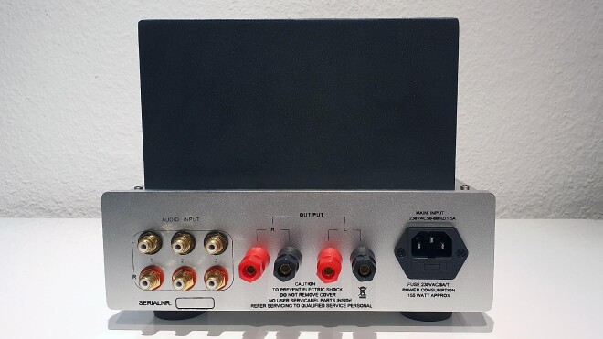 Unison Research Max 1: Per Schalter ist eine Anpassung an die unterschiedlichen Dämpfungsfaktoren von Röhren- und Transistorverstärkern möglich