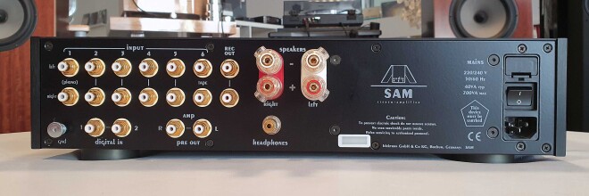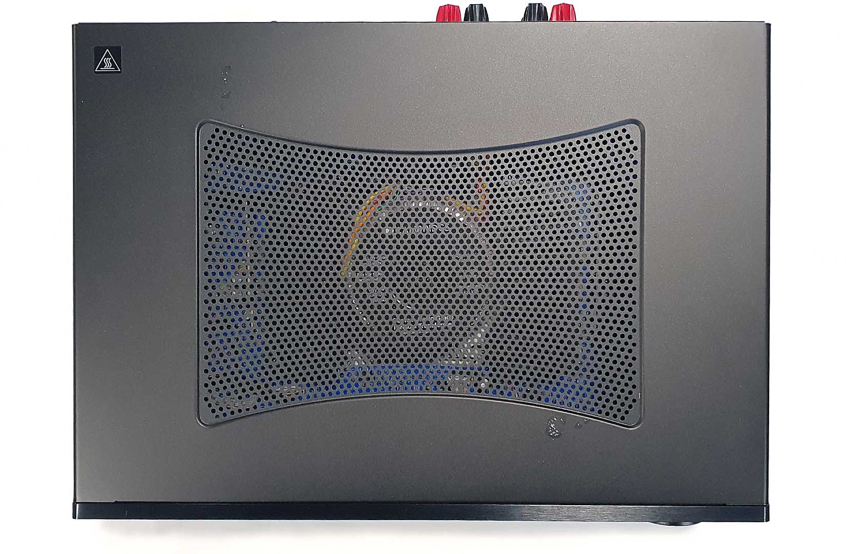Die Endstufe bietet Cinch-und symmetrische Eingänge mit XLR-Buchsen, der Pegel kann kanalgetrennt geregelt oder auch auf fixe Verstärkung umgestellt werden.