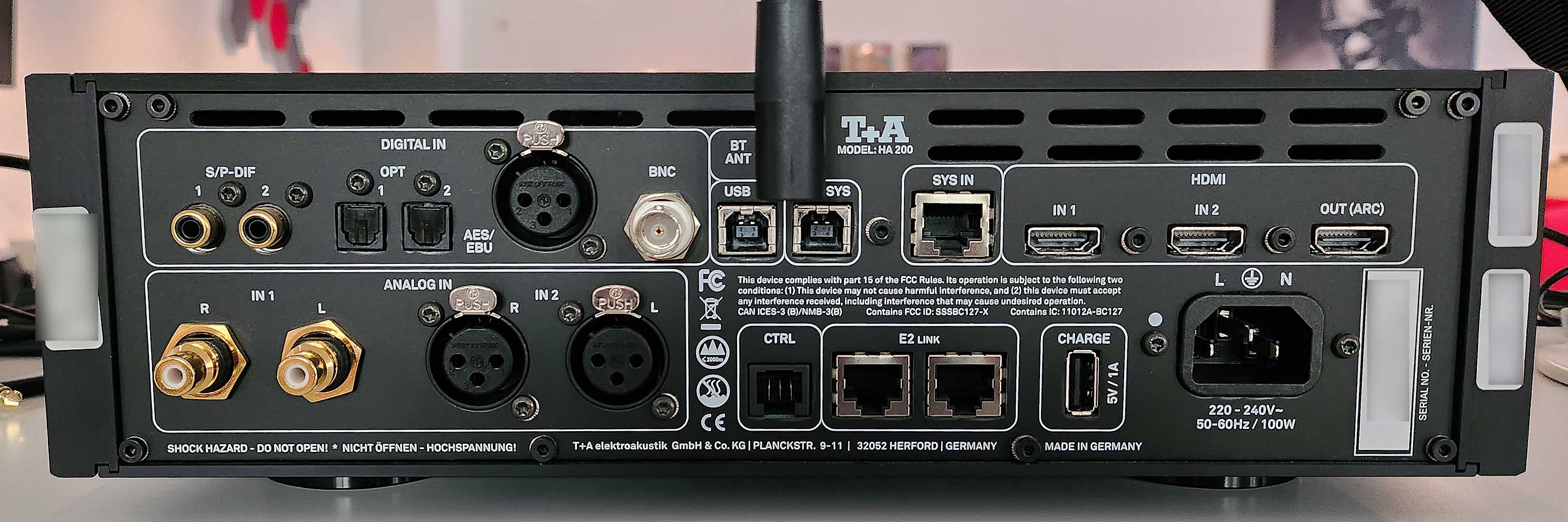 4 digitale Eingänge, Verarbeitung von hochauslösenden PCM- und DSD-Daten, zweie Paar Ausgänge, Bluetooth-Antenne, Kopfhörerausgang… …bequeme Bedienung mittels Dreh-Drück-Steller auf der Front oder über die chice Fernbedienung.
