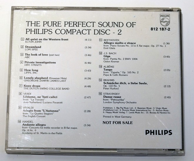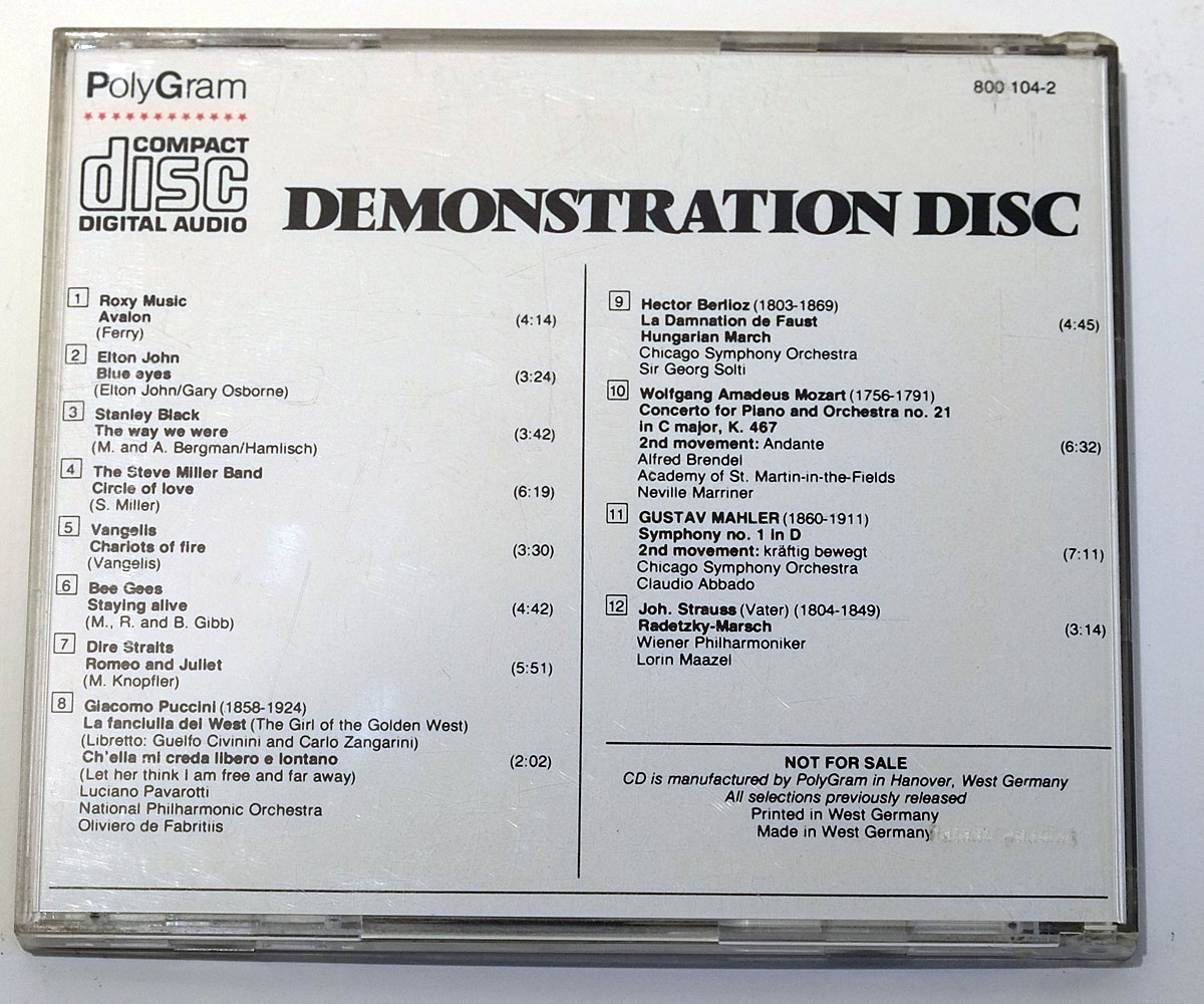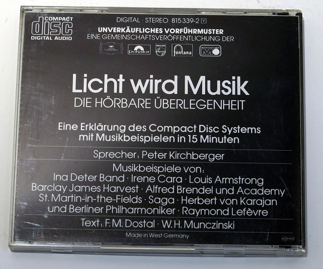 und eine große Sammlung der ersten Compact-Disc-Sampler und Mess-CDs aus den Anfängen der CD-Ära 1982 / 1983 / 1984, die alle im besten Neu- und Sammlerzustand sind (ausgenommen die Plastikhüllen).